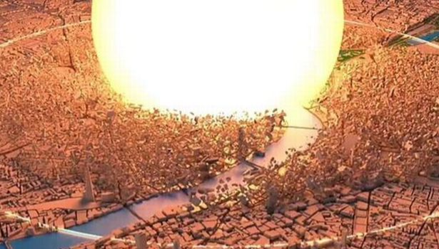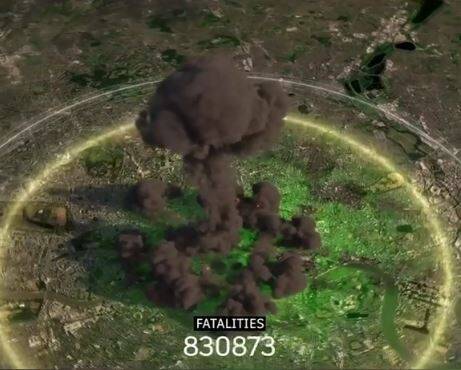 親俄羅斯總統普京的媒體Tsargrad(沙皇格勒),透過Telegram頻道釋出一段4分鐘的模擬影片,內容顯示若有750噸的核武彈頭在倫敦市中心西敏寺爆炸,將產生半徑為950米、跟太陽一樣熱的大火球,任何在火球范圍內的東西都會瞬間被蒸發,而在爆炸半徑5公里內的城市也都將遭受最嚴重破壞。