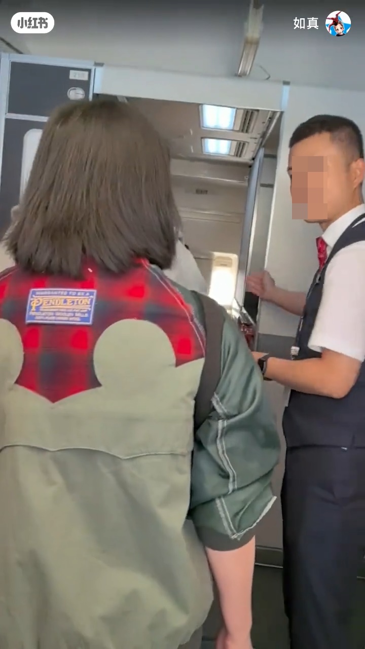 ▲王菲向空少展示登機證,該名華裔面孔的空少向王菲行注目禮。