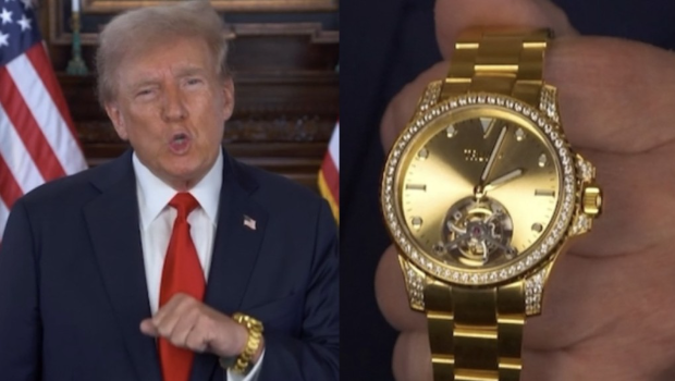 自2024年總統競選活動啟動以來,特朗普一直兜售一系列品牌產品,這是他長期以來融合政治和商業利益的傳統。他曾經兜售圣經、運動鞋、香水、相簿和加密貨幣。而他最新推出的商品是價值10萬美元的鑲鉆手表。