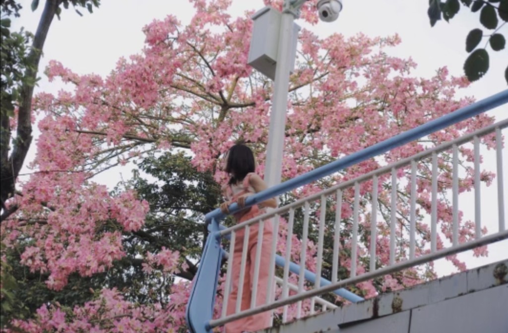 ▲蕭崗天橋可觀賞異木棉。(圖片來源:小紅書@福西西)