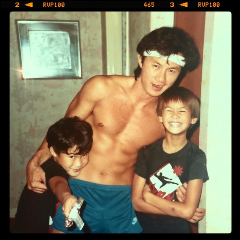 ▲許冠杰好錫大仔許懷欣(右)和細仔許懷谷。