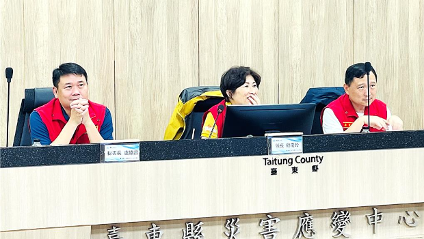 ▲臺東縣政府原宣布4日正常上班上課,大批網友心碎,向縣長饒慶鈴(中)釋出機會改口;未料,玩笑話成真,部分地區改為停班停課。中時網