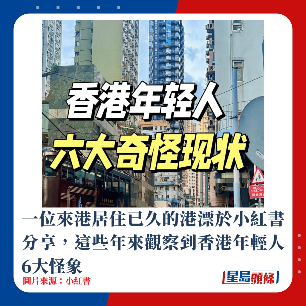 不同年代的生活模式會隨著環境變化而有所轉變。一位來港已久的港漂于小紅書分享她對香港的觀察,直言香港年輕人出現6大怪現象,例如不少香港年輕人都選擇不婚不生,甚至不會買房子,仍然與父母一同居住,但她發現港人即使人工低仍堅持一個傳統?