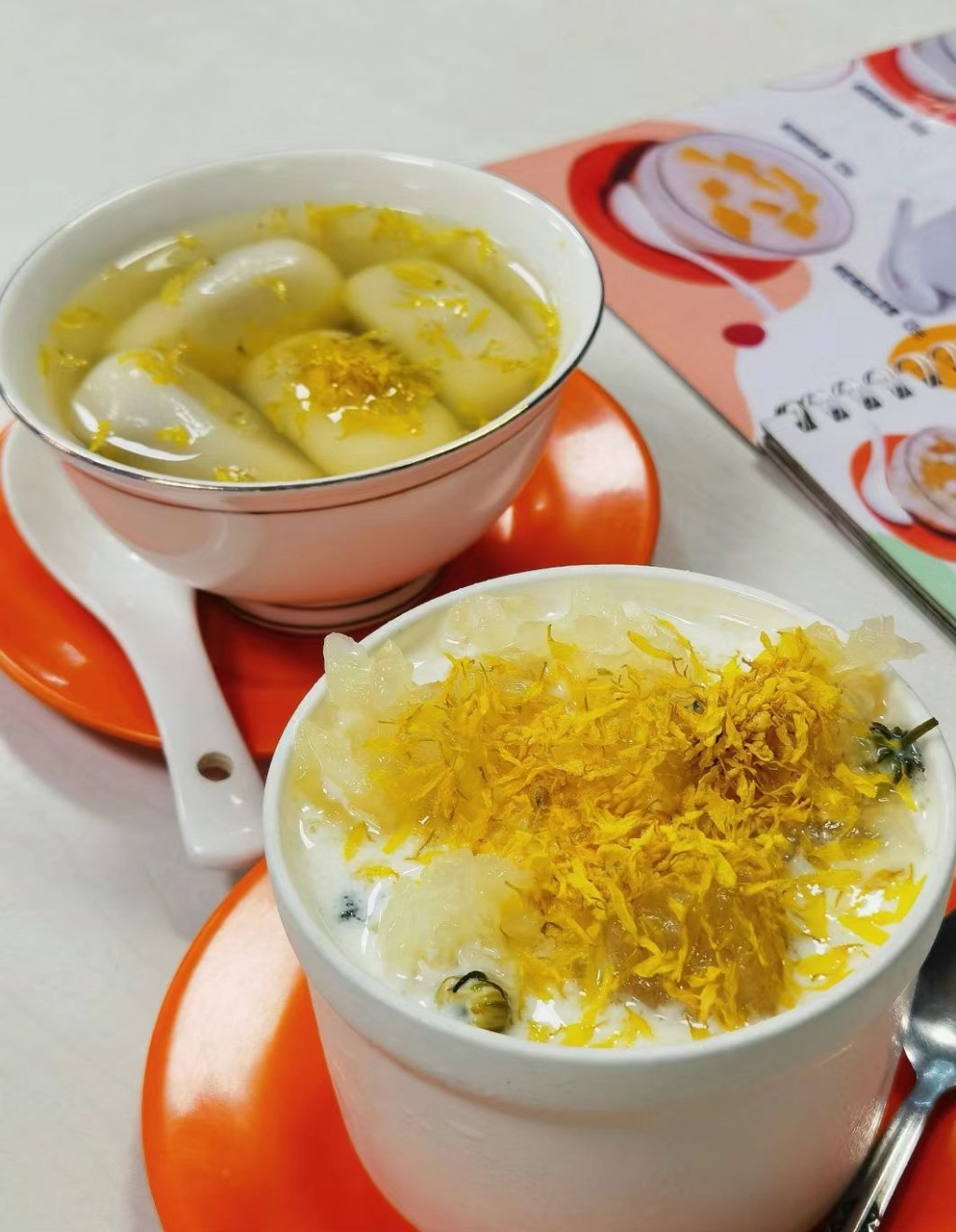 甜苑冰室是小欖老字號糖水店,小欖又稱菊城,就連街坊糖水店也來響應菊花美食,出品有菊花水欖,水欖是小欖特色小吃,類似湯圓,口感軟糯,豆沙餡料,加入菊花熬制的糖水味道清香。菊花雙皮奶,香甜滑溜,滋潤養顏,女士至愛。大家到小欖,不妨發掘傳統新吃的打卡美食。