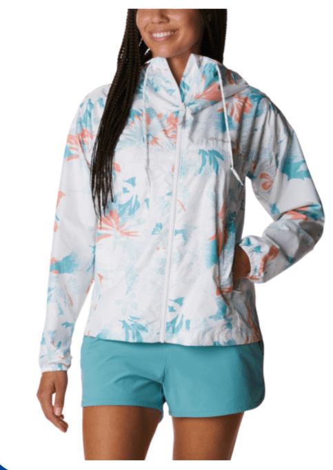 ▲Columbia網店由即日至10月31日推出獨家優惠,圖為女裝防風外套/原價$659、現售$529,以防潑水面料制作,結合奧米·防紫外線科技UPF40防曬功能。會員買滿$1,200,即減$200。