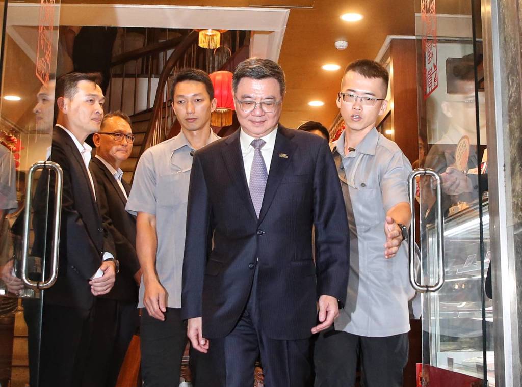 ▲“立法院長”韓國瑜11日邀請朝野“立院”黨團干部與“行政院長”卓榮泰在“立法院”旁的點水樓餐廳吃“和解飯”,協調總預算卡關問題,經一個半小時餐敘后,“行政院長”卓榮泰(前中)步出餐廳。中時新聞網