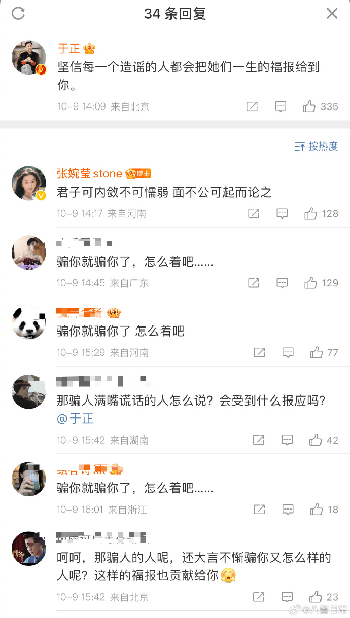 ▲張婉瑩及于正就事件在社交平臺上發文。