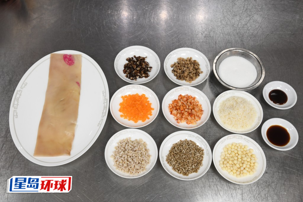 直至“怡東”結業,我有幸能夠與隊友們一起加入文華廳繼續工作,可以跟行政總廚黃永強師傅一起研制一系列懷舊燒味功夫菜,開心得到客人的贊賞。這次教各位星島讀者制作“八寶巖米乳豬卷”,因原只糯米豬雖然氣勢磅礴,但份量較大,平常三兩知己未必能吃得下,經過多番研究,我們最終設計出這一道份量精致的燒豬菜式。