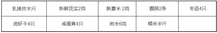 爆香膶腸、虎蝦干、冬菇及咸蛋黃,加巖米、熟薏米、新鮮茨實及糯米,下調味料炒勻成餡料。