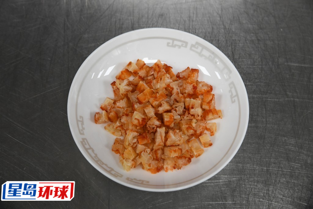3.虎蝦干鮮味濃郁,切成小顆粒入口更有嚼勁。