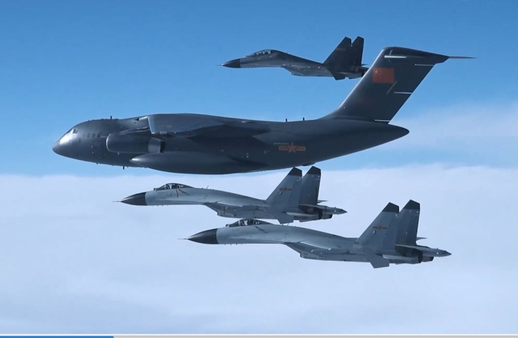▲東部戰區在新戰訓片中展示戰機為運輸機護航。影片截圖