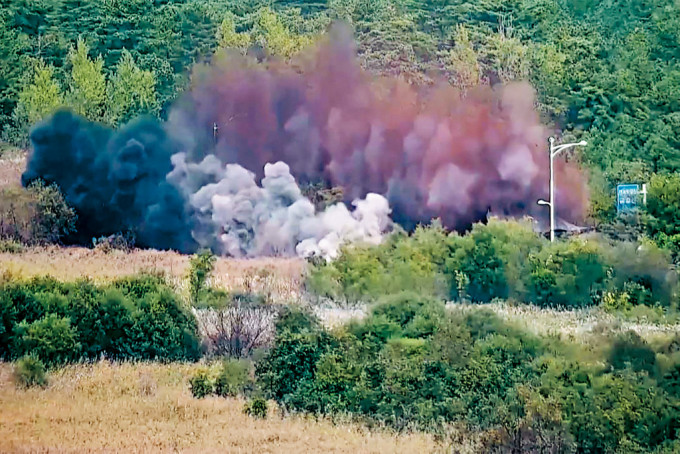 韓國聯合參謀本部說,朝鮮炸毀了京義線、東海線位于兩韓軍事分界線(MDL)以北的部分道路,并正投入重型裝備做后續工作。韓國政府同日下午派遣軍隊在軍事分界線以南射擊,以示自衛權。韓國軍方表示,爆破地點距兩韓軍事分界線僅10米,且未事前通知,明顯違反停戰協定,因此採取射擊行動回應。據悉,韓軍昨日下午出動K6重機槍及K4高速榴彈發射器,在距離兩韓軍事分界線以南100米處的京義線及東海線周邊,各發射數十發子彈。