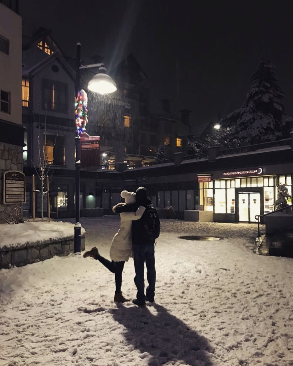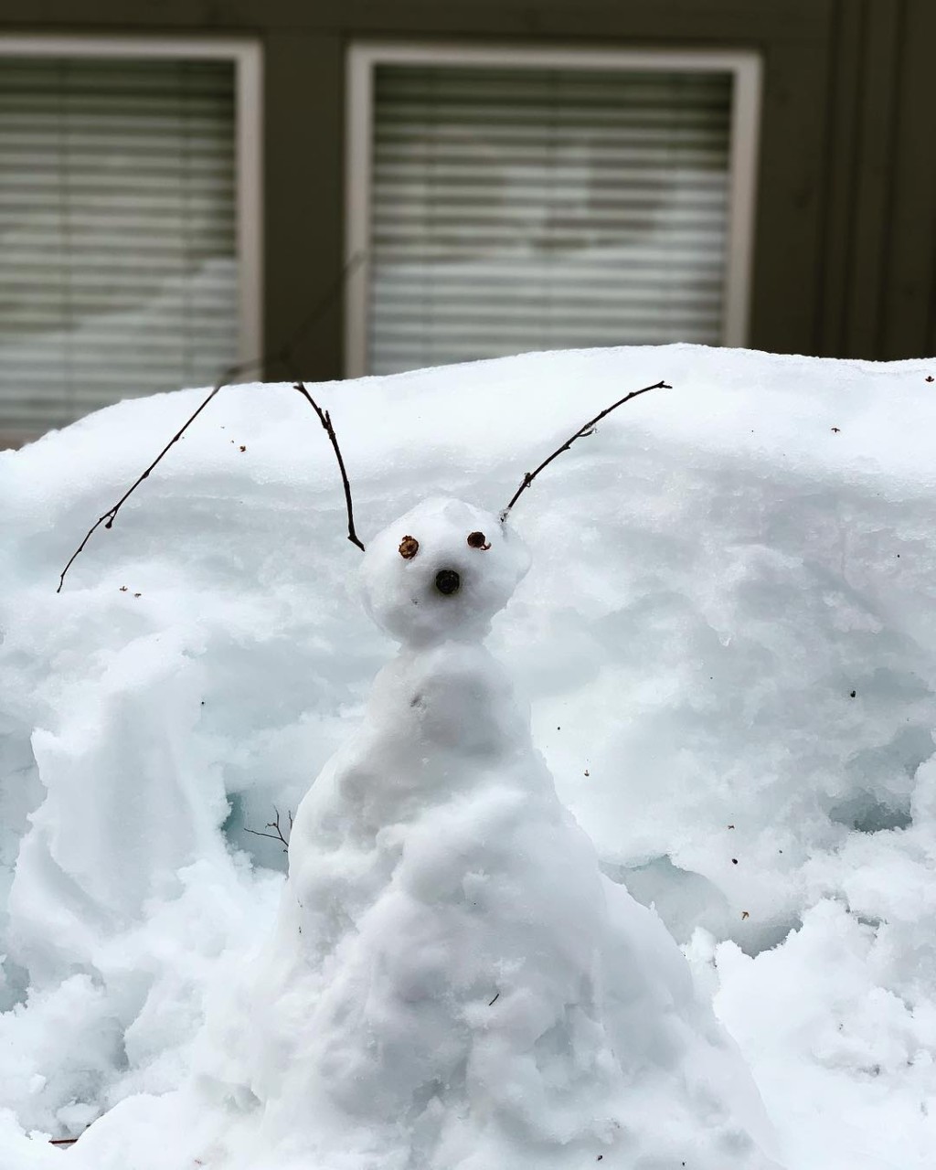 ▲鐘嘉欣曾在家門外陪仔女堆雪人。
