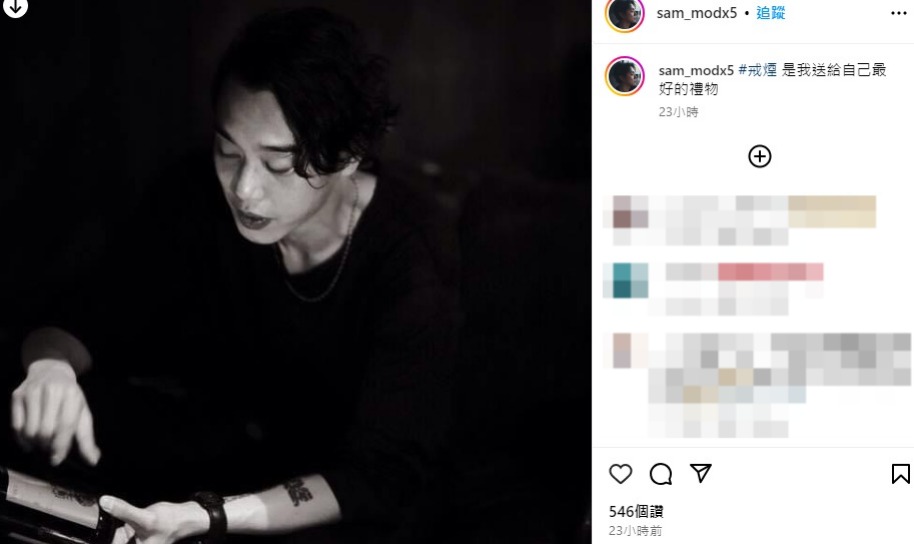 ▲Sam16日就在IG上發文,表示:“戒煙是我送給自己最好的禮物?!倍潭桃幌?,引起外界猜測是否好事近了?