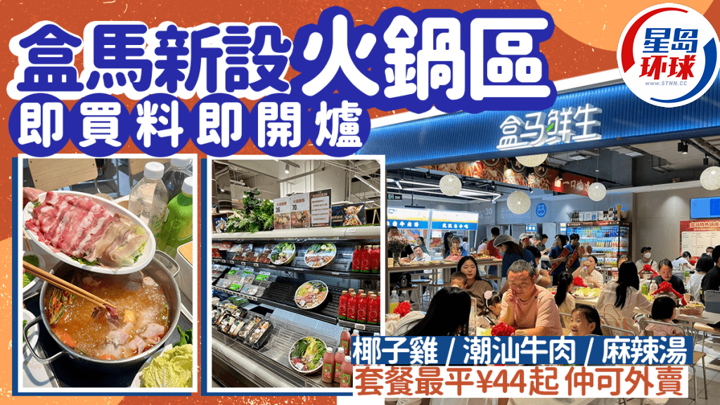 內地超市成為港人北上旅游的熱門目的地之一,“盒馬鮮生”超市日前在分店內新設火鍋區,可以在超市內堂食或外賣火鍋,同時亦推出多款特色火鍋,包括海南椰子雞、潮汕牛肉、牛油麻辣湯等,人均44元起跳,性價比極高。
