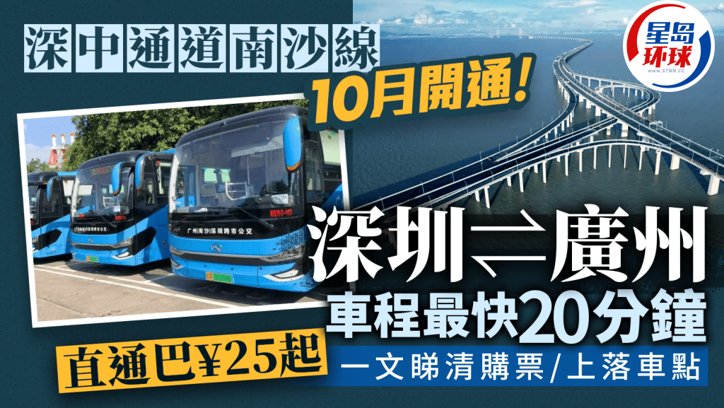 深中通道南沙線10月通車 ¥25起專線直通巴同日投入服務