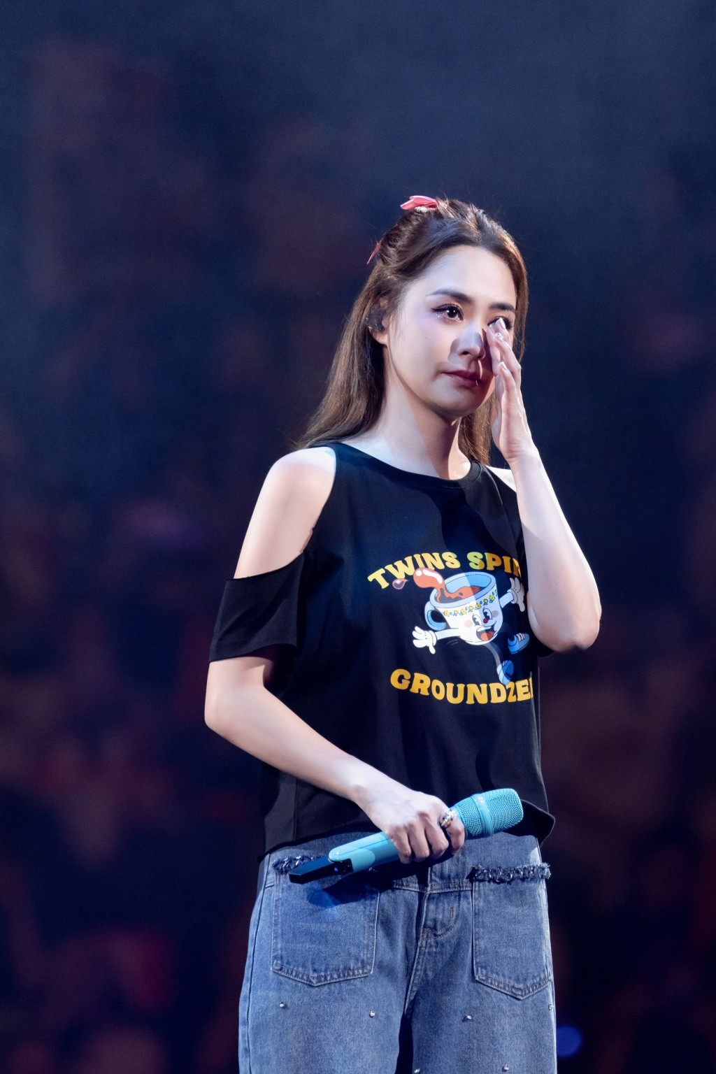 前晚是Twins內地最后一場演唱會,歌迷特別不舍及瘋狂,從第一首歌開始企曬起身跟著Twins又跳又唱,直到散場也不肯坐低。不少歌迷更穿著打扮進場,有人扮古裝,有人扮小丑爆炸頭,又有著睡衣的,氣氛非常熱鬧。演唱會完第一部份快歌后 , 阿嬌見歌迷熱情,已經開始被感動到眼濕濕,坦言,“嘩,咩事,一出嚟就已經想喊?!眱扇顺讲簧俳浀浣鹎鷷r,每每也被歌迷的大合唱歌聲感動到眼濕濕多次,到完場時,兩人再也忍不住淚水,到大合唱‘唱風箏與風’時,都被感動得不斷抹眼淚。不舍得跟歌迷揮手暫別。