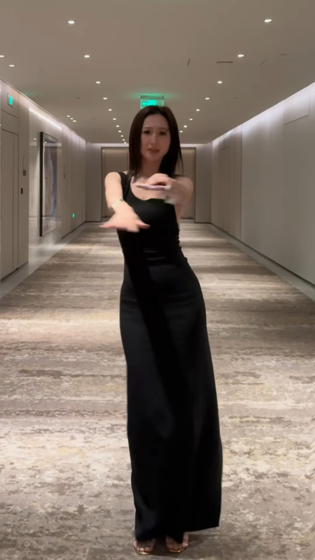 近年躋身TVB花旦之一的37歲高海寧(高ling),憑著內地劇《三十而已》、TVB劇《新聞女王》人氣再創高峰,成為中港兩地“搶手貨”,魅力無法擋!昨日(21日),高海寧就在IG上發布了一條在酒店走廊搔首弄姿的跳舞片,以黑色晚裝真空上陣,大曬性感一面。