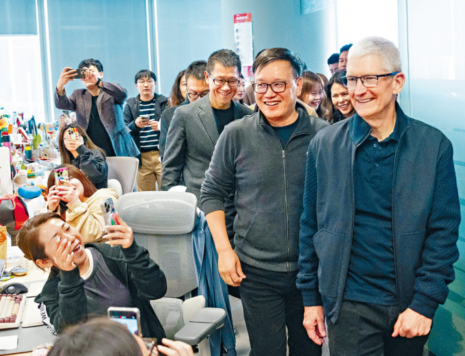 ▲蘋果CEO庫克現身新浪,現場員工紛紛拍照。
