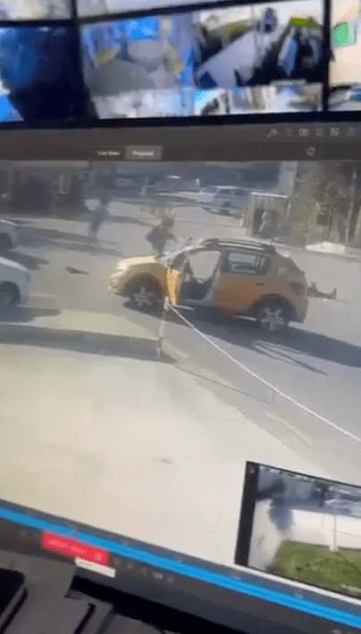 ▲TAI的入口停車場處閉路電視拍下了槍手闖入的畫面,至少兩名穿深色作戰衣服的男子手持長槍,地上有一人躺在一輛汽車旁,疑似中彈受傷。