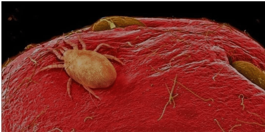 活躍于社交媒體的化學博士K.Kwong,經常分享簡單易懂的日??茖W知識,帖文不時獲網民關注。日前,他轉載了一段外媒的報道,當中引用了一段廣傳于Tiktok的影片,片中有人切下一片草苺外皮,并將其放置在顯微鏡下。鏡頭隨后轉向放大鏡的視角,顯示出一些小型多色的螨蟲似生物在草苺表面爬動。