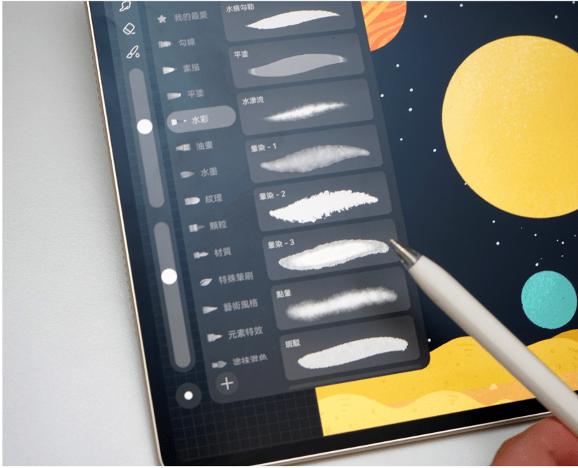 ▲新加入流體筆刷能按不同畫布質地自行調整暈染效果。