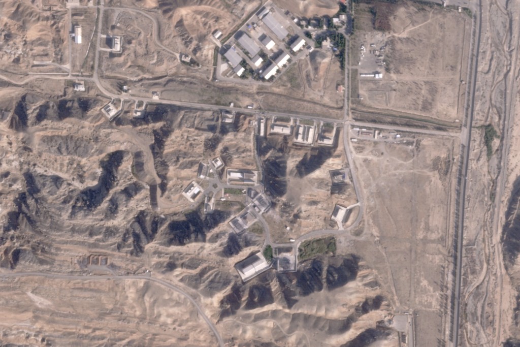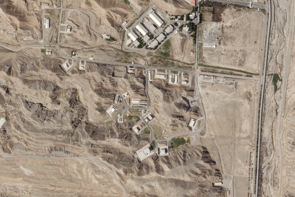 ▲最新衛星圖片顯示,伊朗的帕爾欽軍事基地有部份建筑物受損。美聯社