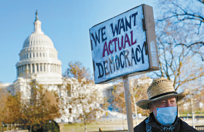 ▲《紐約時報》與錫耶納學院的民調顯示,76%選民認同國家民主正受到威脅,只有20%人認為民主沒有受到威脅。 美聯社