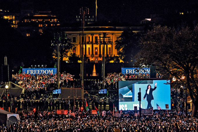 下周二就是投票日,民調顯示雙方支持度難分高下。哈里斯周二在白宮南側的“橢圓形草坪公園”(The Ellipse)造勢,發表“結辯”演說(closing argument)。造勢活動自下午3點開放進場,憲法大道等四周的道路均實施交通管制,已事先報名的民眾大排長龍,隊伍繞著偌大的橢圓形草坪街區轉了好幾圈。哈里斯辦公室稱,參加的群眾超過7.5萬。