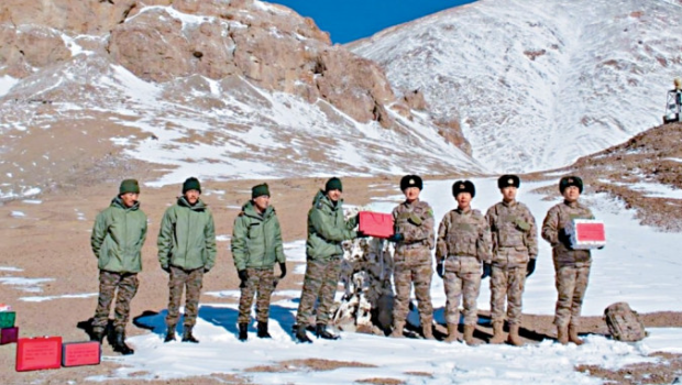 ▲中印軍隊在邊境高海拔地區交換糖果。