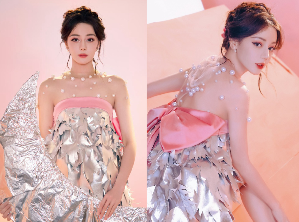 迪麗熱巴日前以一襲高級訂制禮服出席活動,從工作室釋出的形象照中可見,她將長發盤起,禮服以粉色混搭銀色,裙擺銀色楓葉樣式設計,相當有現代科技感,加上身上許多珠寶點綴,更加夢幻。