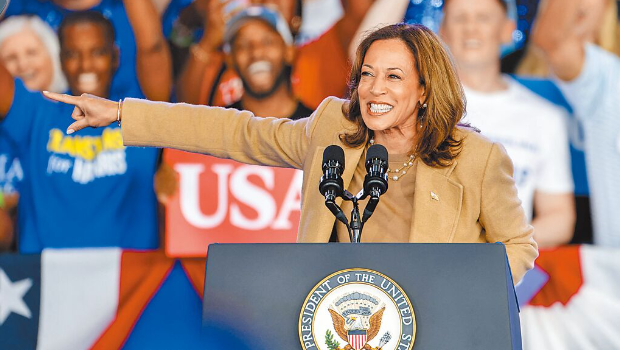 ▲美國愛荷華州一向是支持共和黨的“紅州”,2日卻傳出當地民調顯示,民主黨總統候選人哈里斯(見圖)竟然超車,領先共和黨特朗普3個百分點,為大選投下震撼彈。(路透)