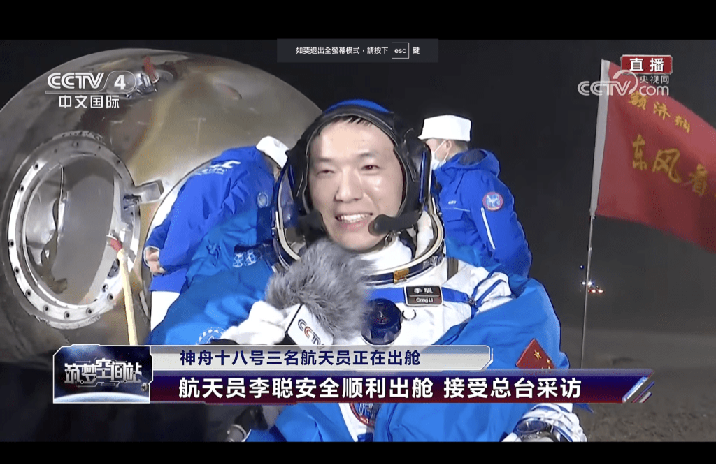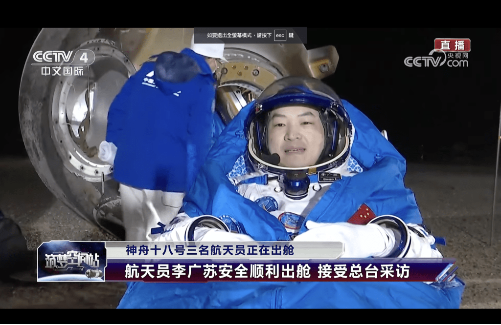 ▲太空員李聰。 央視截圖