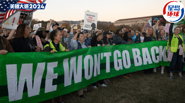 美國女性大游行上周六登場,數千人從華盛頓自由廣場步行到白宮,高喊哈里斯競選口號“拒絕倒退”,不愿特朗普時代再臨,沿路鼓聲讓氣勢更盛。