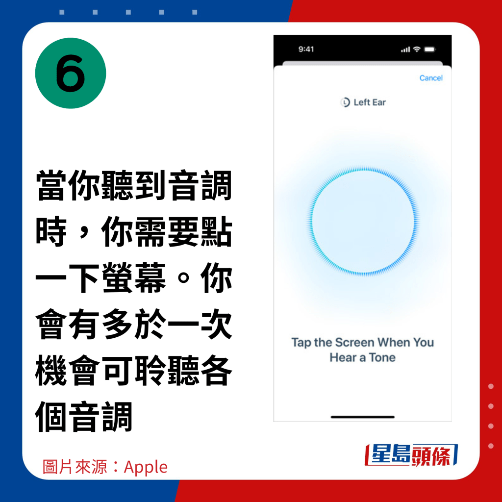 6.當你聽到音調時,你需要點一下螢幕。你會有多于一次機會可聆聽各個音調