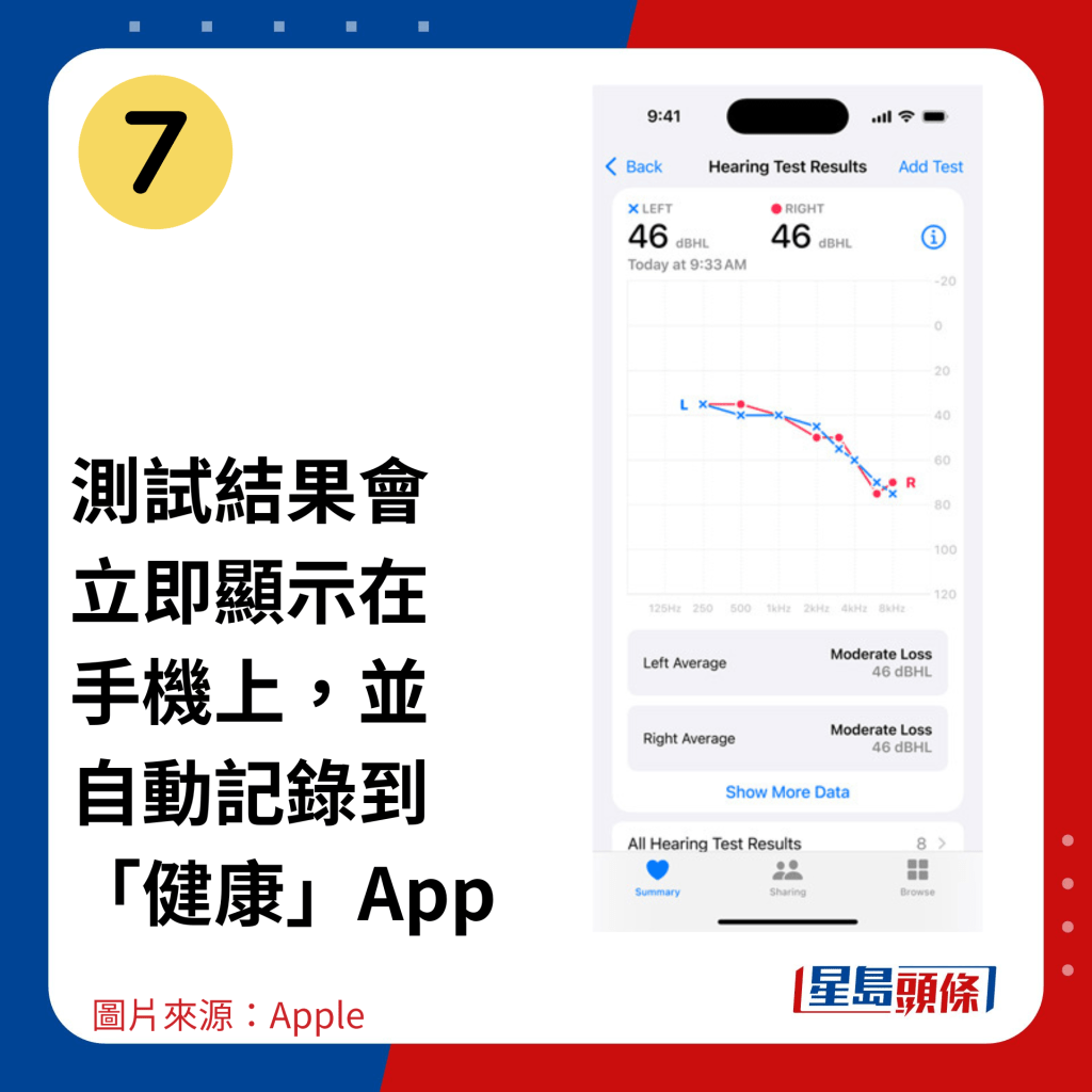 7.測試結果會立即顯示在手機上,并自動記錄到“健康”App