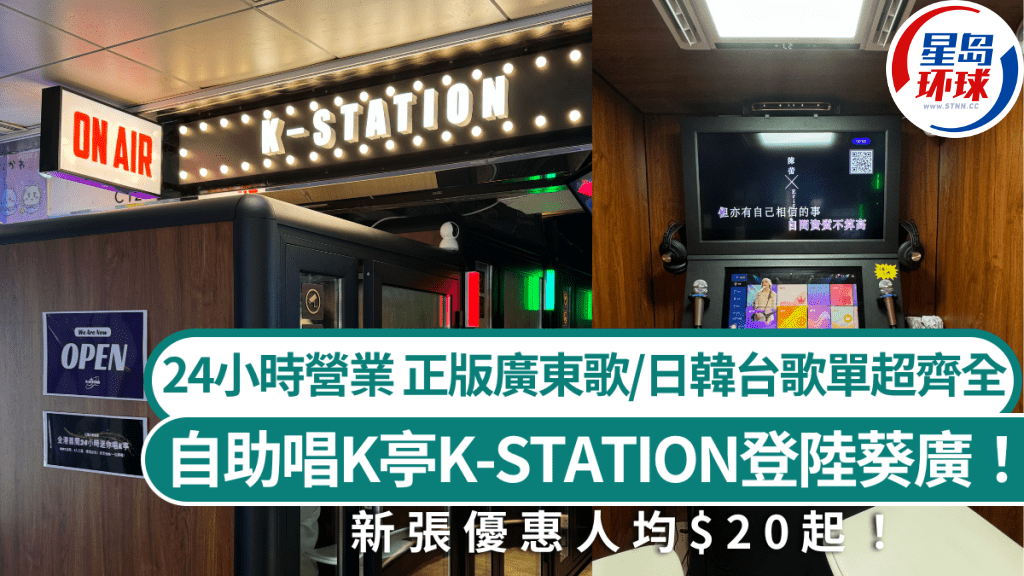 香港首間自助唱K亭登陸葵廣!收工時間想唱K松一松?現時除了連鎖卡啦OK及派對房間(Party Room)以外,再多一個新選擇!香港首間自助唱K亭K-STATION正式登陸葵涌廣場,24小時營業,供應廣東、中、韓、臺、英等多種不同類型的流行曲,不論是“一人之境”獨自高歌,抑或與閨蜜玩樂、情侶拍拖都適合,即看下文了解詳情!