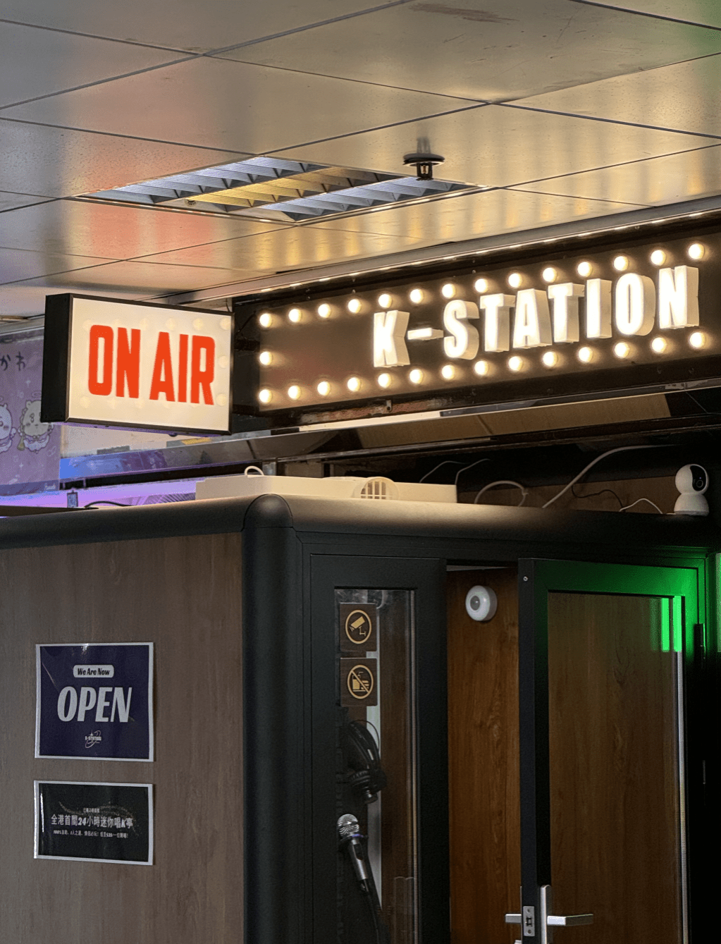 香港首間自助唱K亭K-STATION正式登陸葵涌廣場,主打24小時全天候營業及全自助無人服務體驗,設有3間迷你K房,每間最多可容納2人,服務時間彈性,讓大家可以在無人打擾的情況下盡情高歌!每間唱K亭均配備先進的音響配置及點歌系統,為達到超強隔音效果,唱K亭更採用強化隔音玻璃,私隱度極高。