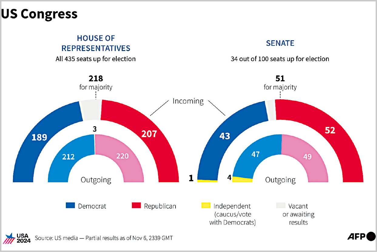 ▲目前,共和黨已經重新取得參議院的控制權,并在眾議院改選中稍為領先。 法新社