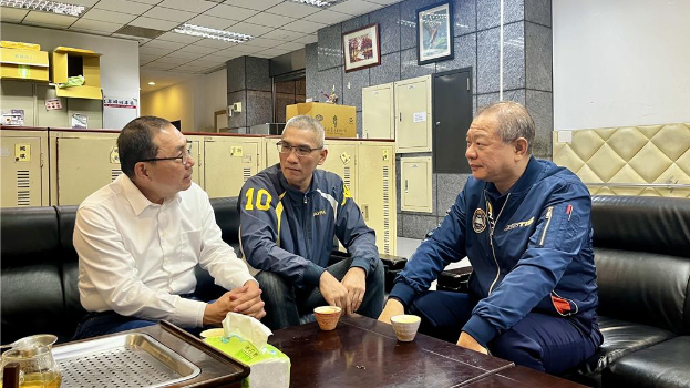 ▲薛先得(中)曾是侯友宜(左)的部屬,也曾是廖訓誠(右)的警大學生。(新北市政府提供)