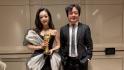 ▲得到中美電影節年度最佳作曲的舒楠(右),以及演唱主題曲《愛是唯一的選擇》希林娜依·高(左)。