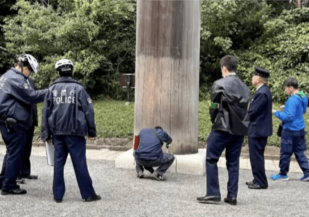 由于明治神宮今年6月中才進行過檢查,當時并沒有出現有關涂鴉,推斷文字是近期被劃上去,警方將調查事件。明治神宮亦呼吁游客“說:這是相當貴重的鳥居,希望大家不要在上面涂鴉”。