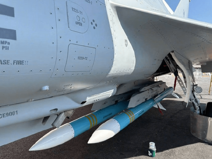 這架飛機和以往的殲-10C最大的區別就是武器掛載能力比較強。因為它在掛架設計上有重大突破,機腹下面有一個雙聯掛架,原來只能掛一枚導彈,現在可以掛載兩枚。左右機翼下面的三聯裝掛架,就是在以前的基礎上,提高作戰效能。