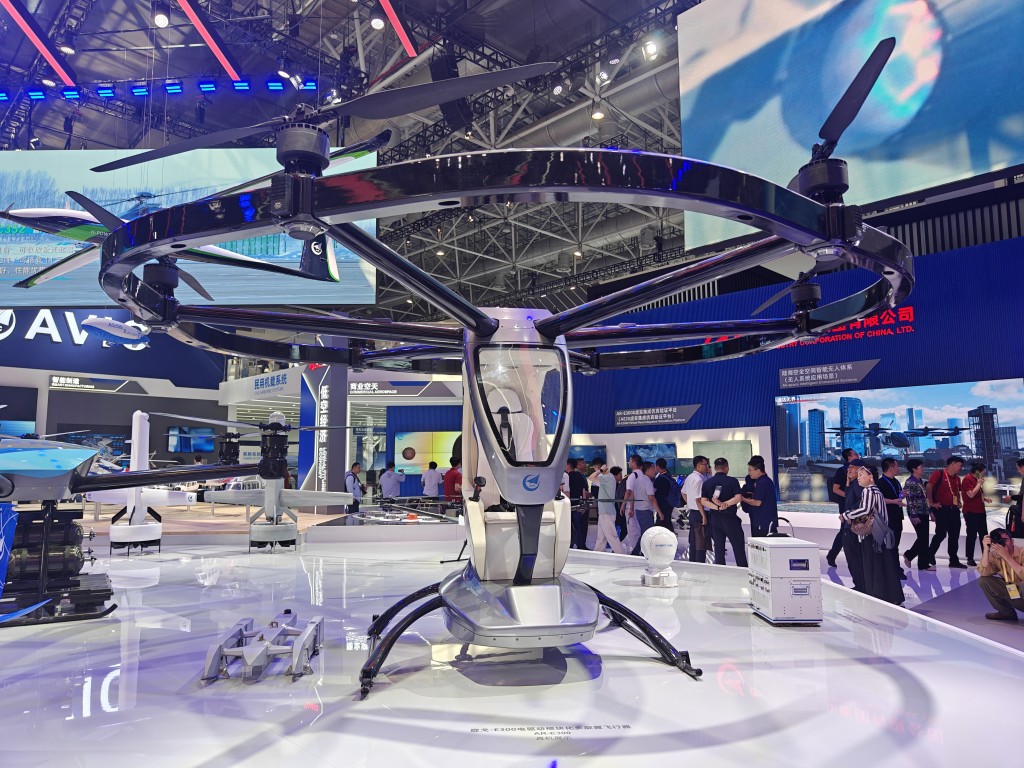 ▲低空經濟展區,一系列多旋翼飛行器真機展出。
