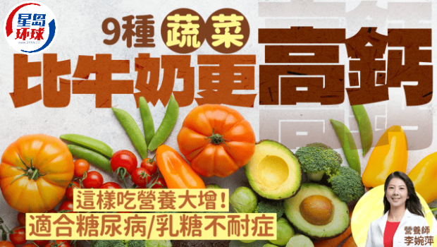 營養師李婉萍在其網站發文指,一般全脂牛奶每100毫升含有104毫克鈣質,但有9款蔬菜的鈣含量比牛奶還要高:
