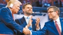 ▲特朗普13日在華府參加眾議院共和黨黨團會議,并與眾議院議長強生握手。美聯社