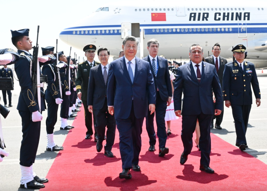 當地時間11月14日下午,國家主席習近平乘專機抵達利馬,應秘魯共和國總統博魯阿爾特邀請,出席亞太經合組織第三十一次領導人非正式會議并對秘魯進行國事訪問。特首李家超也到機場接機。