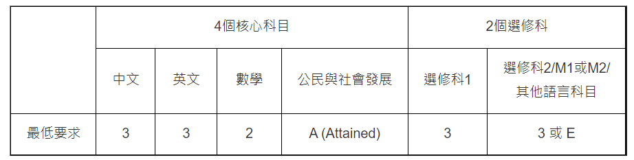 理大的DSE文憑試最低入學要求如下: