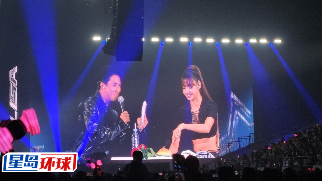 雖然Lisa狀態不佳,但她仍落力演出,晚上8時45分,黑色造型打扮大曬纖腰、長腿的她,在粉絲的尖叫聲下登場,勁歌熱舞《LALISA》拉起序幕。Lisa以英文表示對上一次來港是跟BLACKPINK隊友來開演唱會,又直言:“我想念我的女孩們?!彼种干洗蝸砀弁娴煤荛_心,所以一直很期待再訪港。Lisa又指香港落雨,一度擔心粉絲來不了,很感謝粉絲到場支持。