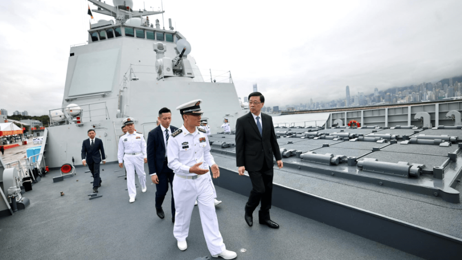 解放軍兩棲攻擊艦“海南艦”和導彈驅逐艦“長沙艦”組成的“三一”艦編隊,昨日(21日)起一連五日訪問香港。行政長官李家超今日登艦參觀,并代表香港特區政府和市民熱烈歡迎“三一”艦編隊的到來,指編隊的作戰能力非凡,讓人民引以為傲。